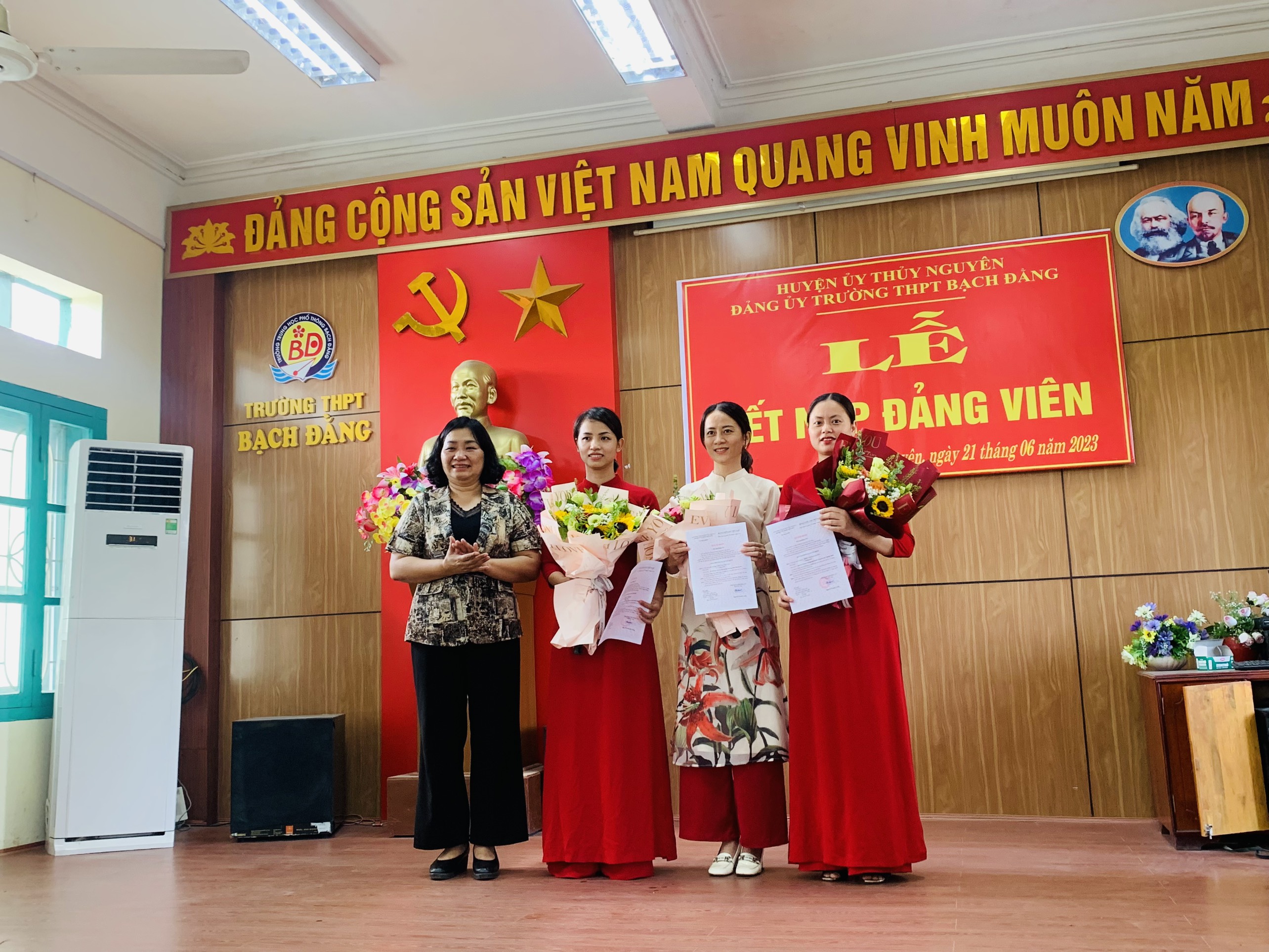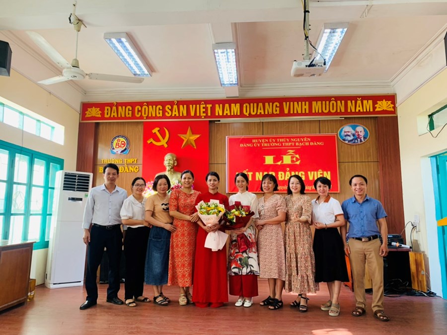 Căn cứ Điều lệ Đảng cộng sản Việt nam, Thực hiện quyết định số 100/QĐ-HU, 101/QĐ-HU, 102/QĐ-HU ngày 26/5/2023 của Ban thường vụ huyện ủy Thủy Nguyên về chuẩn y kết nạp đảng viên. Chiều ngày 21/06/2023; nhân ngày Báo chí Cách mạng Việt Nam (ngày 21 tháng 6), Đảng ủy trường THPT Bạch Đằng đã long trọng tổ chức Lễ kết nạp đảng viên mới cho ba quần chúng ưu tú Đoàn Thị Tiệp, Đinh Thị Mai Huyền, Mai Thị Hải Vân vào Đảng cộng sản Việt Nam.