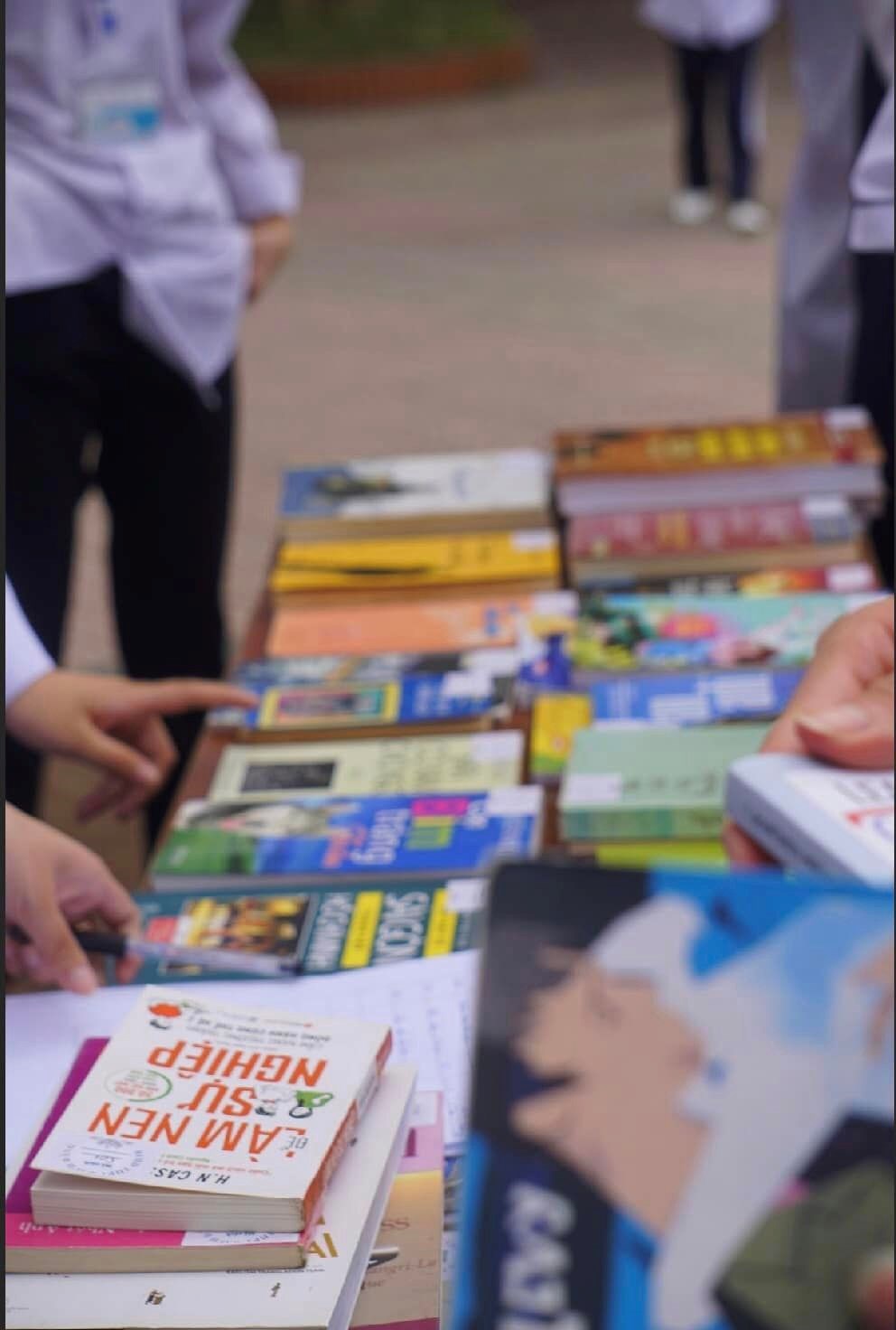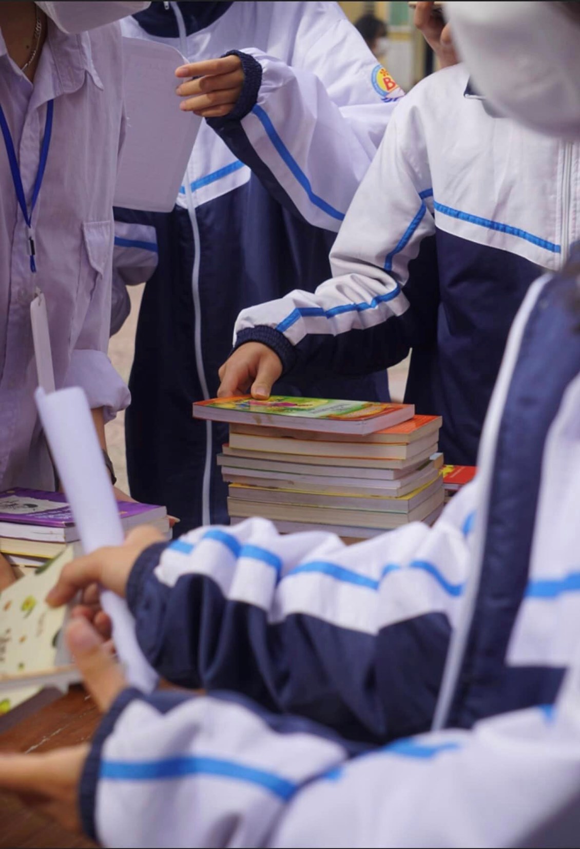 Hình ảnh các bạn học sinh mang theo sách để tham gia sự kiện!