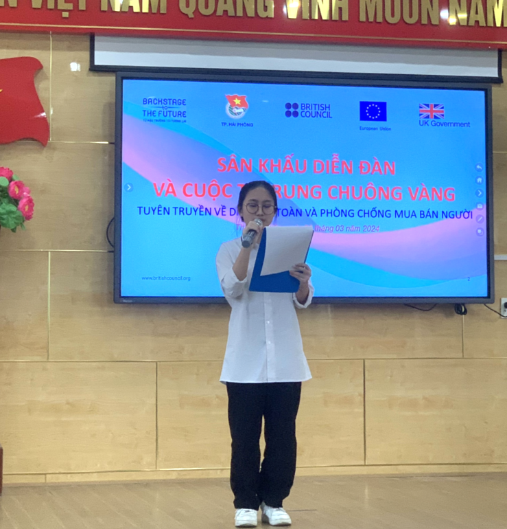 Tại chương trình các bạn đoàn viên,thanh niên đã được xem và tham gia vở kịch với nội dung liên quan đến nạn lừa đảo,buôn bán người bất hợp pháp. Vở kịch nhằm tuyên truyền, nâng cao nhận thức cho Đoàn viên thanh niên về phòng chống mua bán người và di cư bất hợp pháp, kỹ năng nhận dạng các thủ đoạn lừa đảo trong mua bán người góp phần tạo môi trường sống an toàn, thúc đẳy tăng thêm số lượng người di cư, xuất khẩu lao động an toàn, theo con dường chính thống, từ đó hạn chế, giảm thiểu và ngăn chặn tình trạng di cư bất hợp pháp.