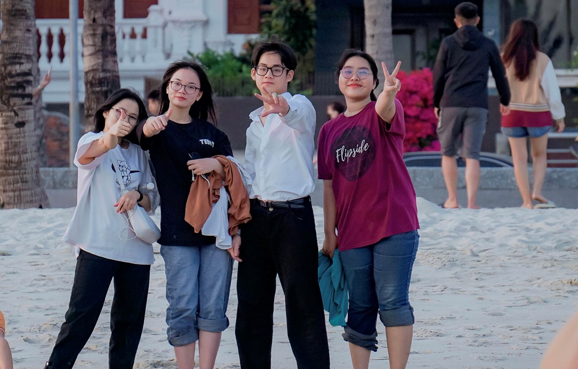 Các bạn học sinh tại điểm đến Hồ Yên Trung và bãi tắm Hòn Gai - Quảng Ninh.