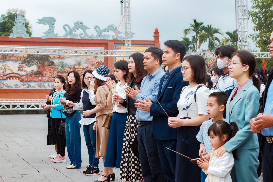 Đoàn dâng hương tại đền thờ Trạng Nguyên Lê Ích Mộc, xã Quảng Thanh.