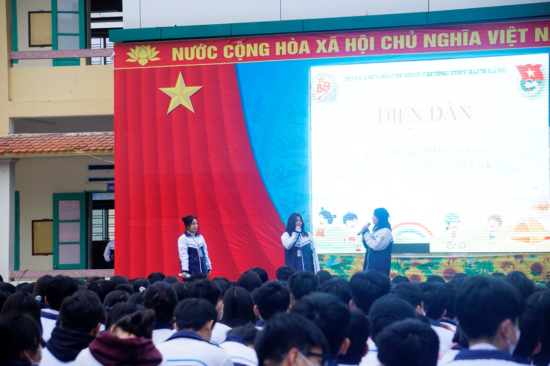 Nhận thấy được mức độ quan trọng và hậu quả khôn lường của vấn nạn này, BGH và Đoàn thanh niên trường THPT Bạch Đằng kết hợp với các lớp 10A1, 10A10 và 10A11 đã tổ chức diễn đàn xây dựng tình bạn đẹp - nói KHÔNG với Bạo Lực Học Đường vào sáng thứ 2 của tuần đầu tiên trong tháng 12-20222. Về dự buổi hoạt động có thầy cô trong BGH, Đoàn thanh niên cùng toàn thể các thầy cô giáo chủ nhiệm và các bạn học sinh trường THPT Bạch Đằng. Tại diễn đàn, các bạn học sinh đã có được sự hiểu biết nhất định về BLHĐ, mức độ nguy hiểm của vấn nạn này và tiếp thu, nắm được những giải pháp khi gặp BLHĐ.