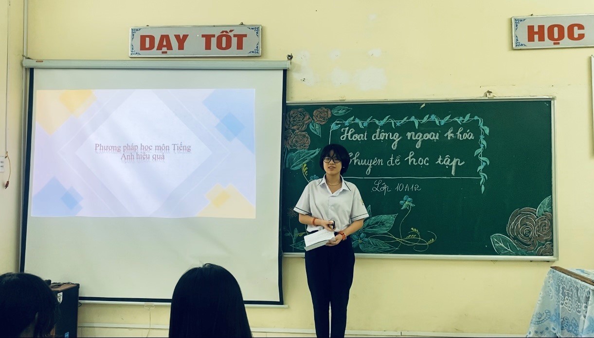 Với xu thế hội nhập toàn cầu, Tiếng Anh luôn đóng vai trò quan trọng trong cuộc sống. Vì vậy ngay khi bước chân vào ngôi trường mới – trường THPT Bạch Đằng, các em học sinh lớp 10A12 đã có buổi trao đổi cùng nhau về việc nâng cao chất lượng học Tiếng Anh ngay từ đầu năm học. Các em học sinh trong lớp đã được bạn Vũ Dung Hà Mai – lớp trưởng, là một học sinh đã đạt giải Nhì môn Tiếng Anh cấp huyện lên chia sẻ quan điểm của bản thân về phương pháp học hiệu quả môn Tiếng Anh. Thông qua buổi trao đổi này, các em học sinh lớp A12 đã có thêm được nhiều cách, nhiều phương pháp khác nhau để tiếp cận với bộ môn Tiếng Anh được cho là khó học một cách hiệu quả hơn và đây cũng là tiền đề để các em nhận thức nâng cao, trau dồi các kỹ năng nghe, nói, đọc viết ngay khi các em học từ lớp 10.