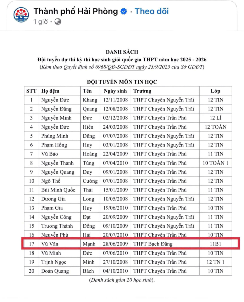 🌟 Và đặc biệt, đội tuyển vô cùng tự hào khi có bạn Vũ Văn Mạnh – 11B1 đã xuất sắc được vào Đội tuyển Quốc gia môn Tin học.