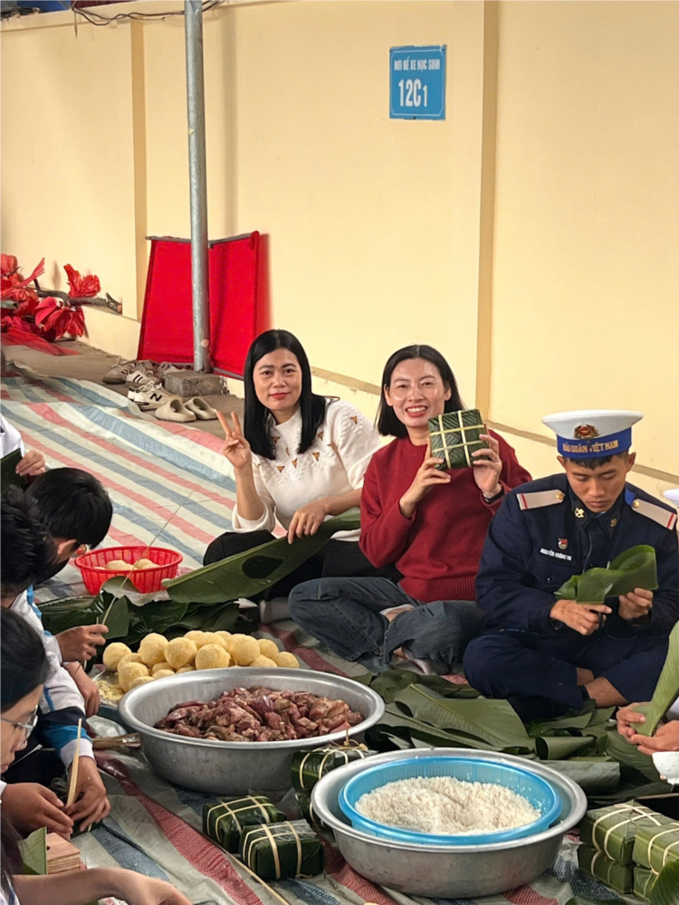 Đặc biệt, chương trình có sự phối hợp, hỗ trợ nhiệt tình của cán bộ, chiến sĩ Lữ đoàn 126. Các chiến sĩ trực tiếp hướng dẫn kỹ thuật gói bánh, chia sẻ kinh nghiệm thực tế và đồng hành cùng thầy trò trong suốt quá trình chuẩn bị. Sự phối hợp này góp phần làm cho hoạt động thêm thiết thực và giàu giá trị giáo dục truyền thống.